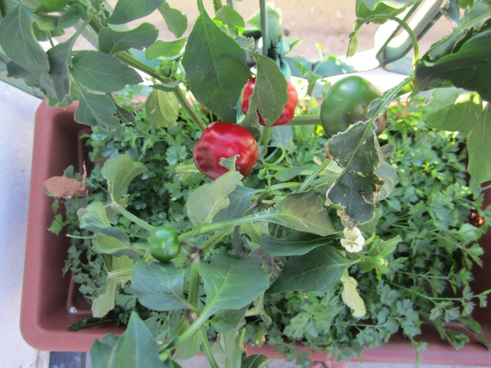 Qui c'è una piccola piantagione di peperoncini che presto darà i suoi frutti.