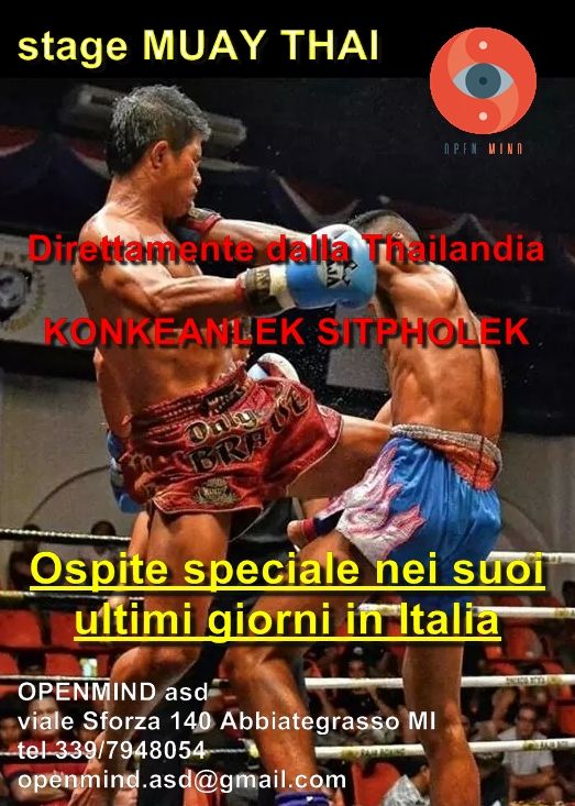 DESCRIZIONE: un forte combattente direttamente dalla Thailandia per la OPEN MIND asd! lo abbiamo intercettato nei suoi ultimi giorni di soggiorno in Italia e ve lo portiamo sabato 6 dicembre sul nostro tatami per uno stage speciale! circa 300 incontri alle spalle 3 volte campione di Pattaya 2 volte campione tedesco Campione della Thailandia 2012 e 2013 vincitore del Pascha gala SE AMI LA MUAY THAI NON PUOI MANCARE!!!